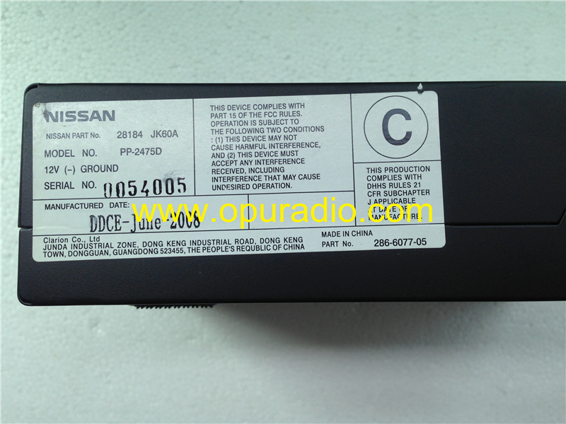 Nissan 28184 JK60A 6-Disc CD changer for Infiniti G25 G35 G37 2007 2008 car radio audio